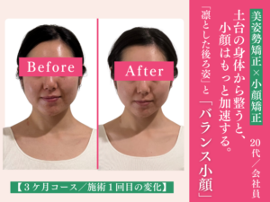 お顔の左右差と姿勢を整える。3ヶ月間の継続ケアで目指す「背中美人」